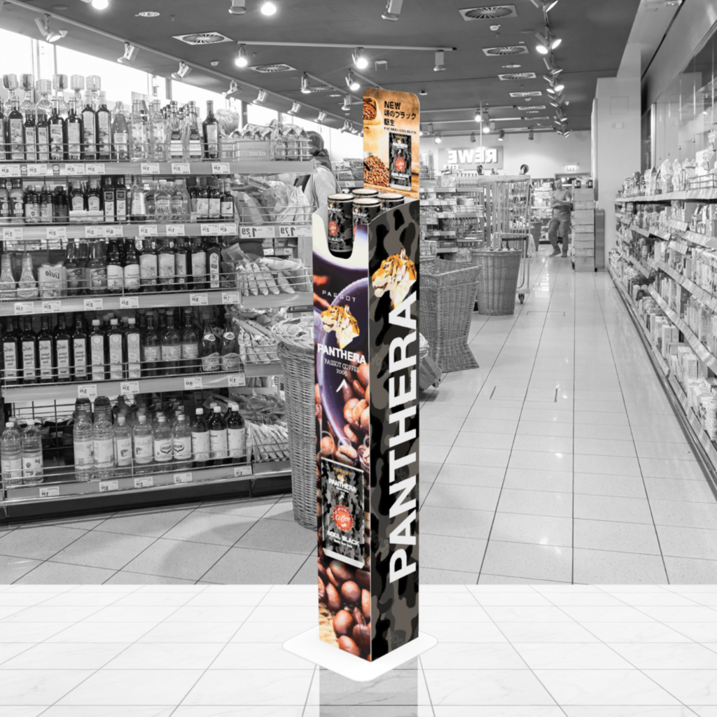 This dynamic movement creates strong visual impact at the point of sale.